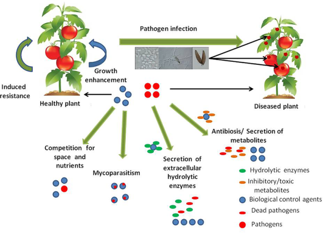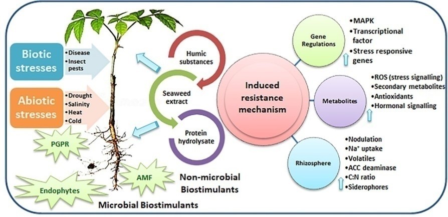Patojen eknfeksiyonlarına karşı bitkinin savunma sistemleri, fenolik savunma bileşiklerinin sentez yolakları ve çeşitli mekanizmalar aktifleşir. Fitoaleksinlerin sentezi, alleopatik kimyasal ve sekonder metabolit ve fenolik asitlerin sentezi ve enzimatik faaliyetlerde artış deniz yosunu gibi biyositmülant ve aktivatör uygulamaları sonrası hızla artış göstermektedir.